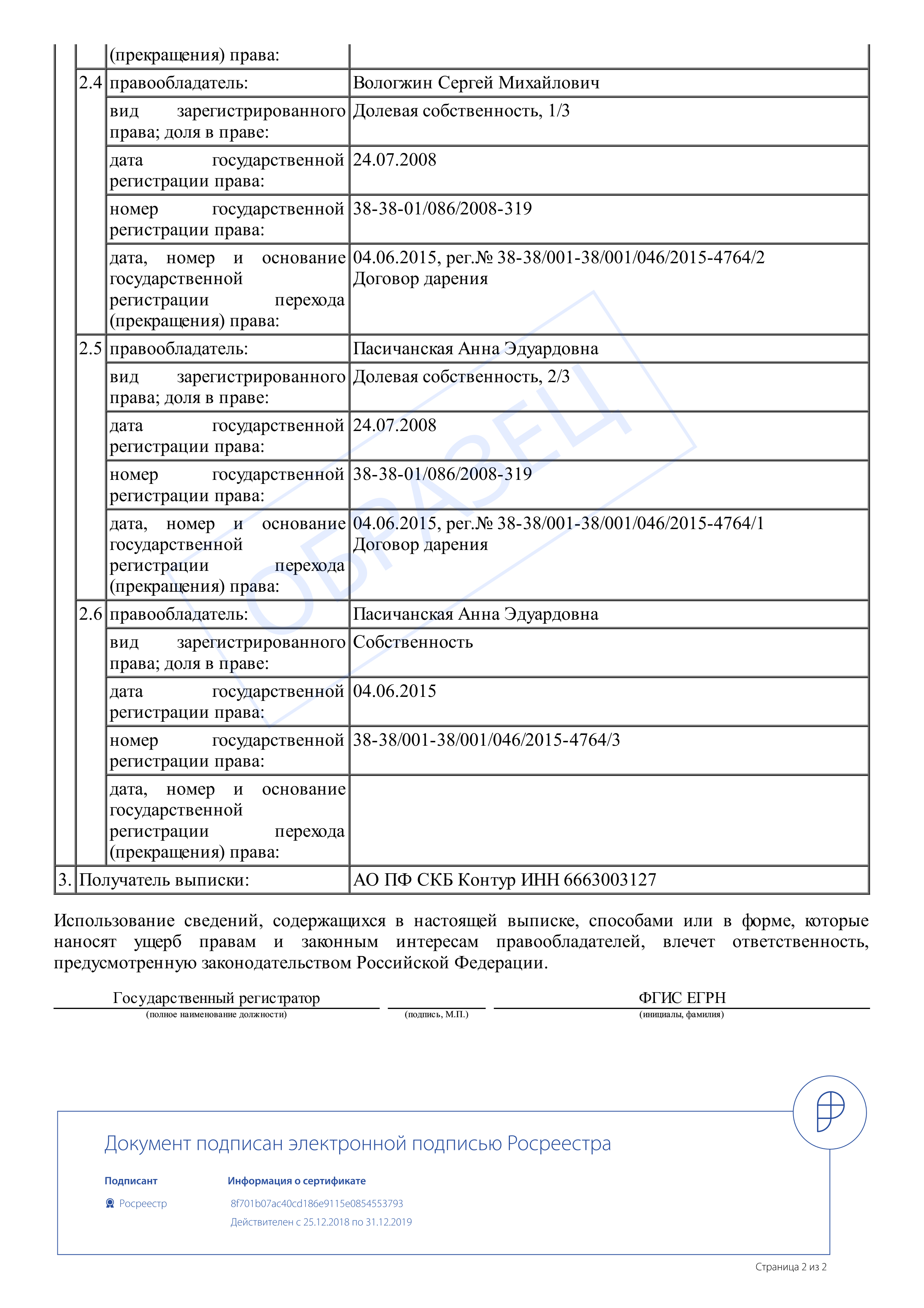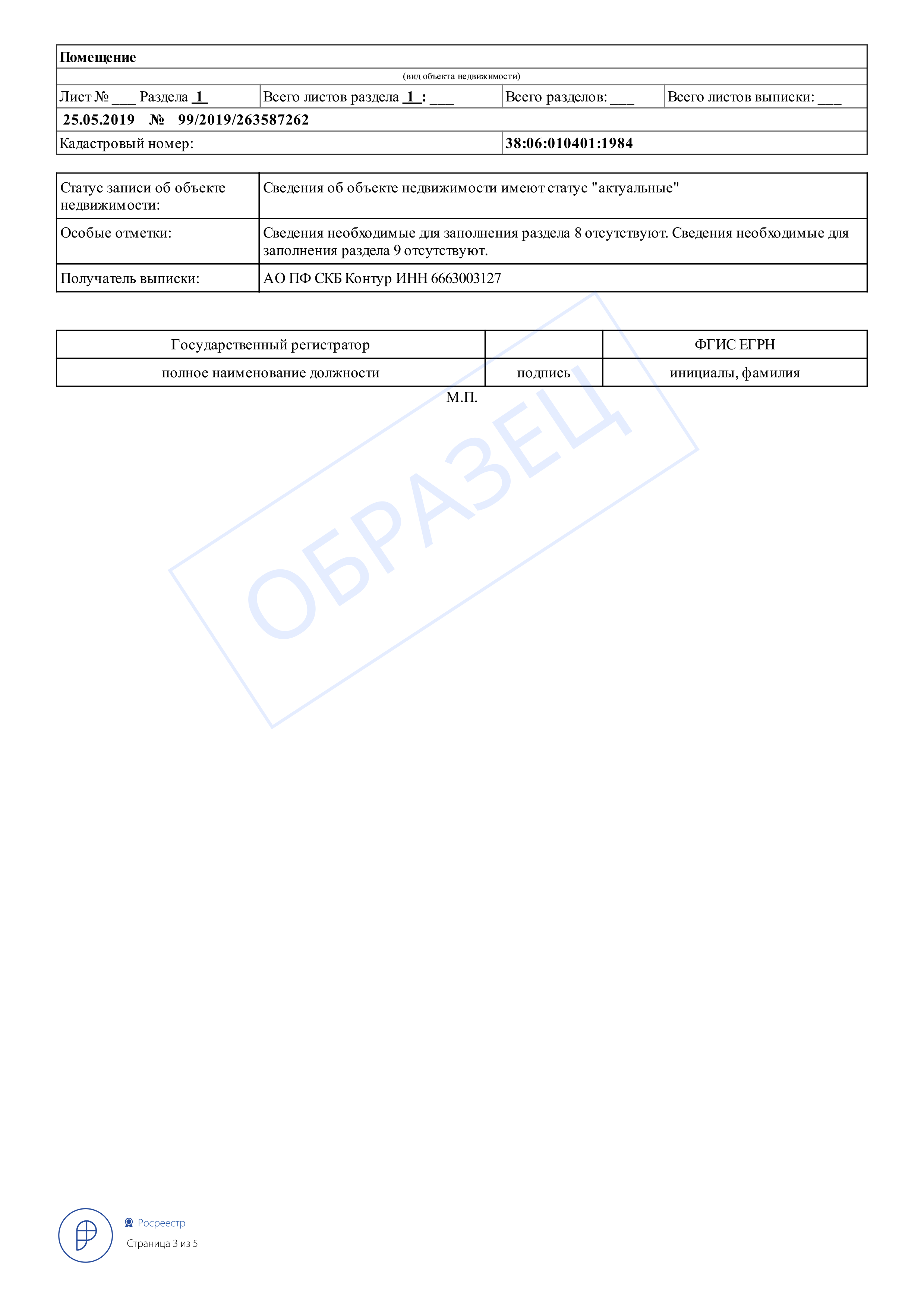Все выписки, выдаваемые нашим сервисом заверены усиленной электронной подписью Росреестра и имеют официальный статус.