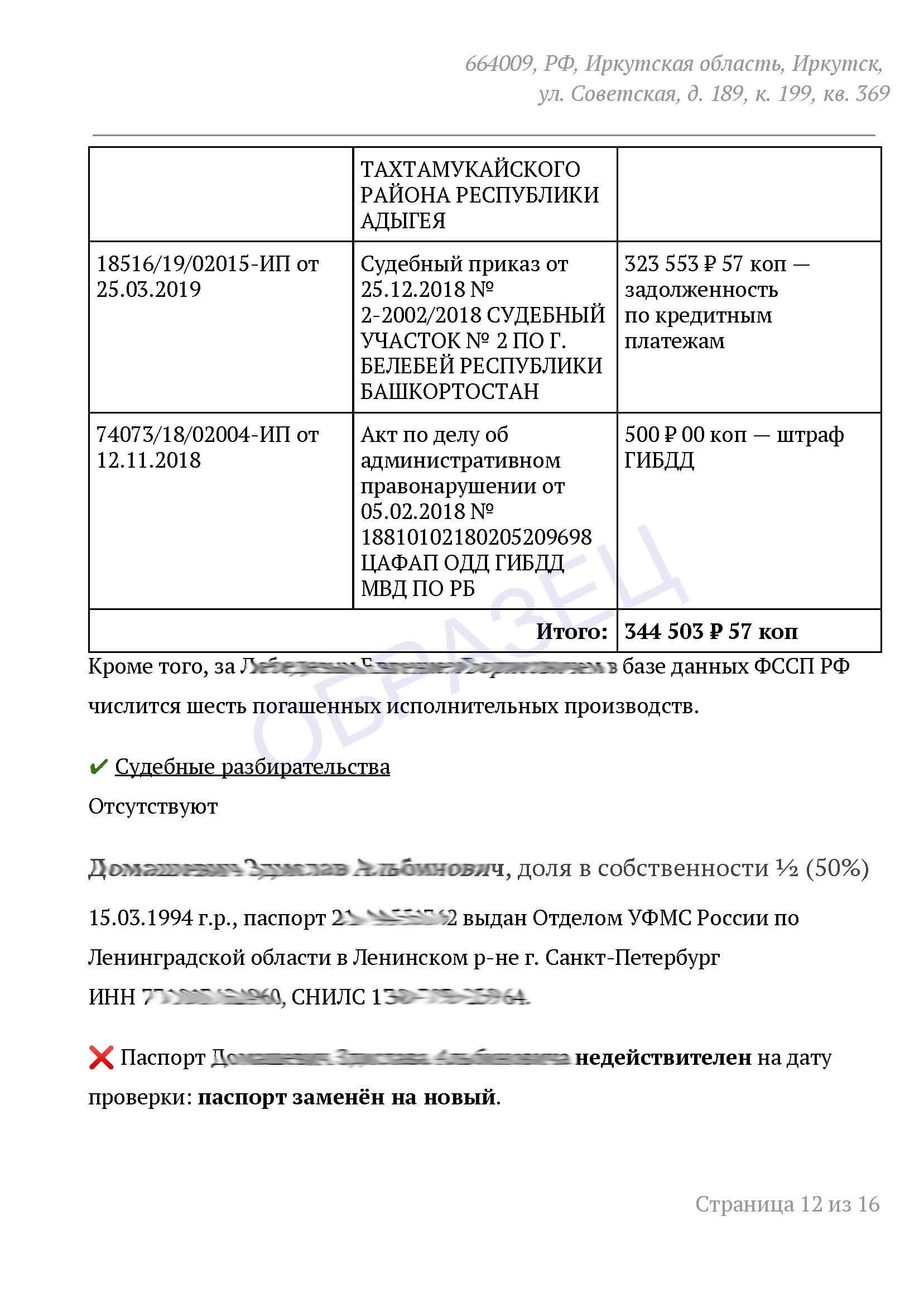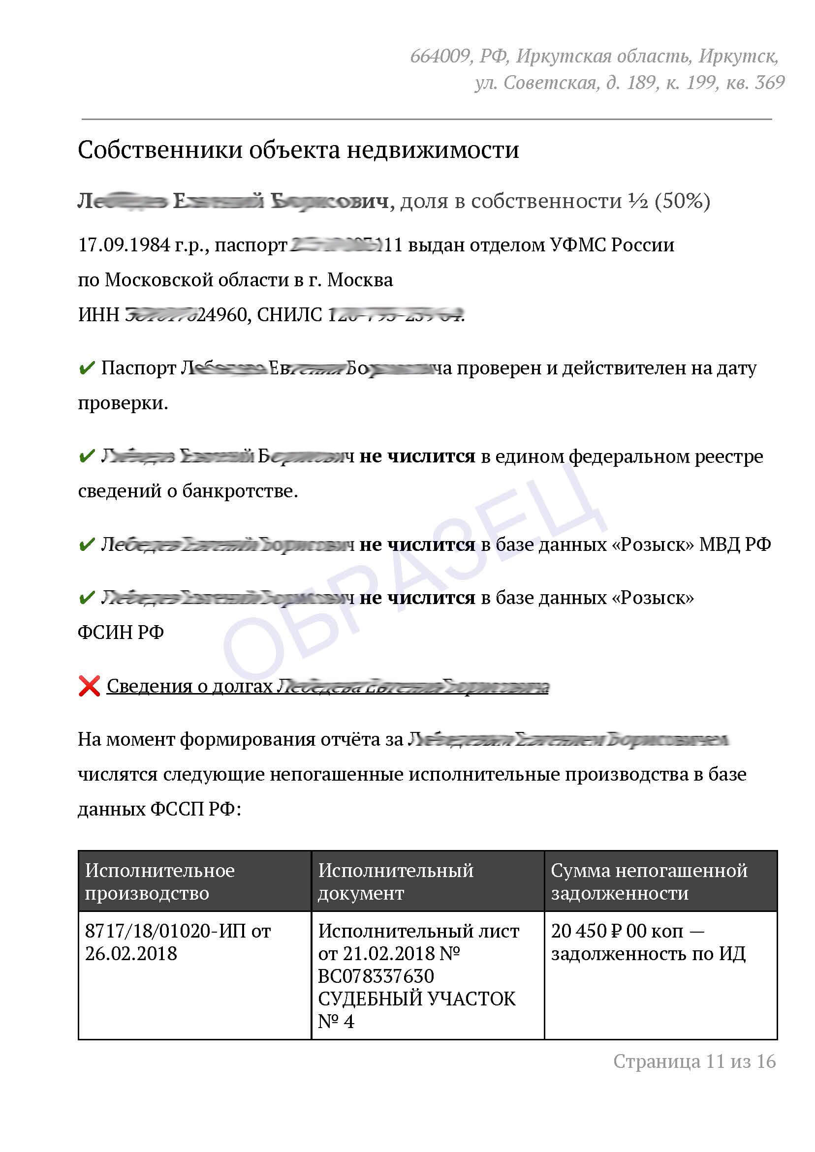 Отчет о рисках получится максимально полезным, если вы пришлете на проверку паспортные данные собственника. Если знаете только ФИО – тоже хорошо.