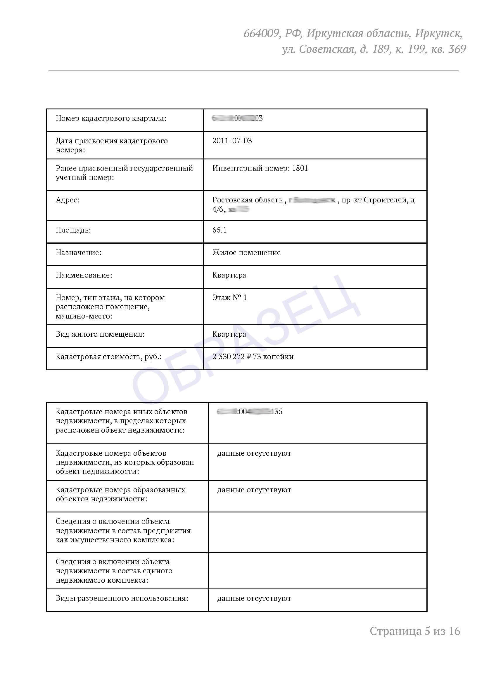 | Расширенная выписка об объекте недвижимости |